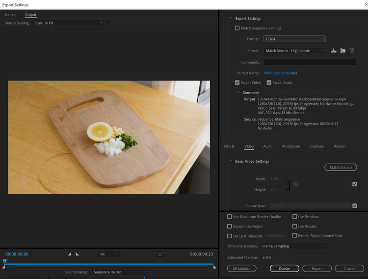 Media Encoder is the more sensible option here; it's literally built to convert files en masse. Click the plus sign at the top of the queue and import your clip. Choose H.264 as your destination container, select your destination folder, and press play to get things rolling. For batch-processing MOV to MP4, Media Encoder is our top recommendation.